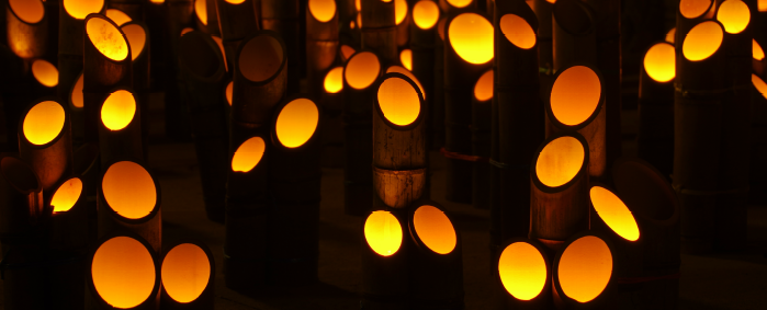 竹に穴を開けたり、溝を掘ったり。竹に思い思いのデザインを施し、竹灯篭からもれるヒカリの美しさを競うデザインコンテストを開催します。応募作品は半田運河キャナルナイトの2日間、JR半田駅前の新川通りに展示予定。優秀作品には副賞もご用意しています。一人複数作品の応募も可能です。夏の思い出にヒカリのアート作品を作ってみましょう。